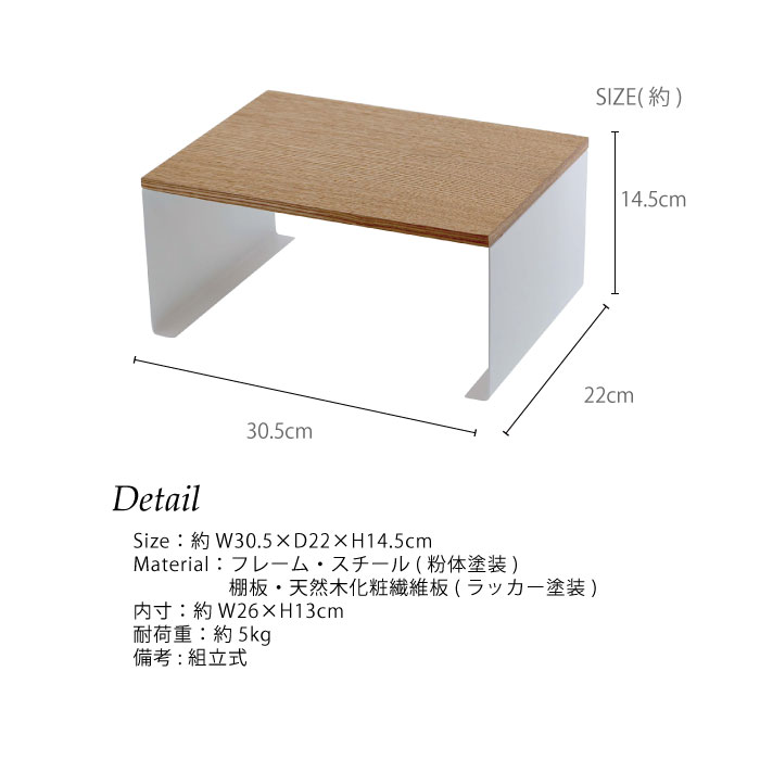 サイズ 約W30.5×D22×H14.5cm 素材・材質 フレーム・スチール(粉体塗装) 棚板・天然木化粧繊維板(ラッカー塗装) 内寸 約W26×H13cm 耐荷重 約5kg 備考 ※食器等は付属しません。