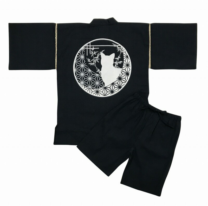 [江戸てん]甚平 しじら織り 涼しい 夏 綿100% 捺染プリントオリジナル柄 メンズ 丸窓の猫