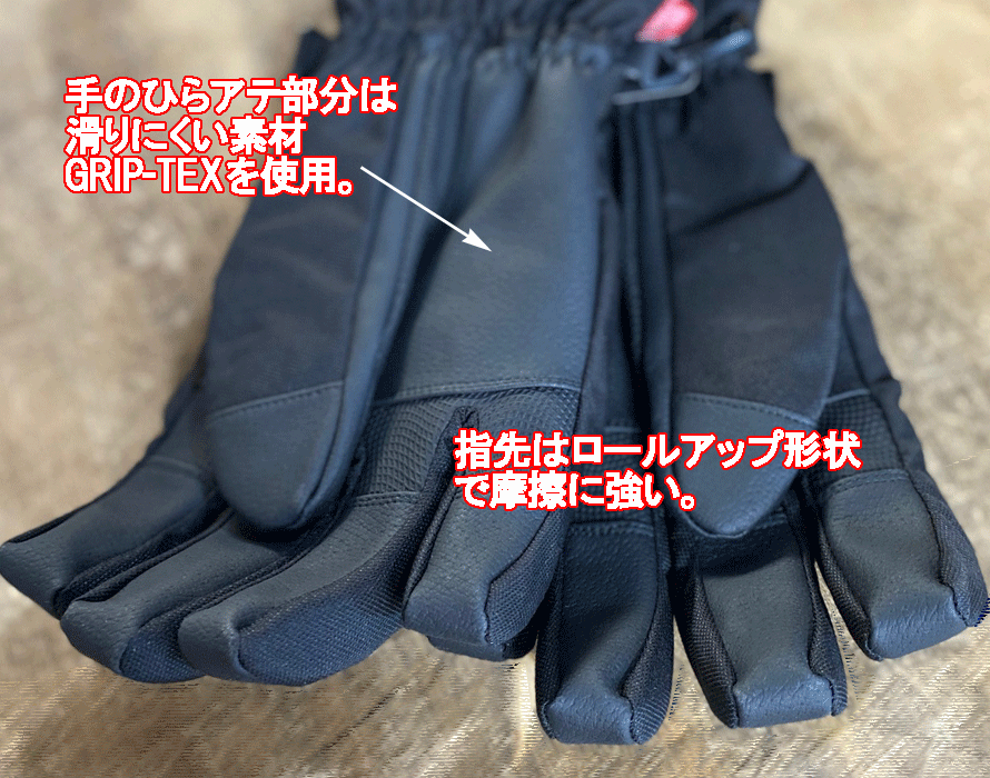 指先ロールアップの本格仕様! 手のひらアテに滑りにくいGRIP-TEXを使用。