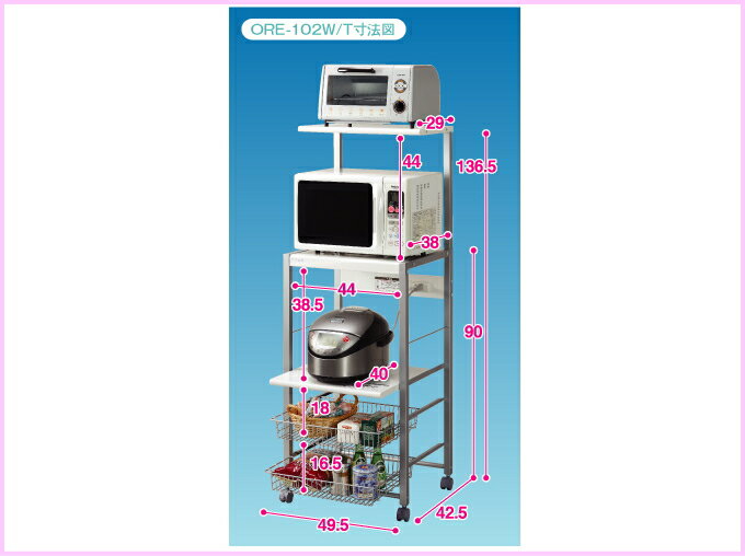 フローリエ 組立式オープンラック 4段 上棚板・キャスター付き (ORH-202) 【RCP】【送料無料】【組立】【キッチン用品】【キッチン収納】【キッチンラック】【レンジ台】【レンジラック】【収納】【ラック】【炊飯器置き】