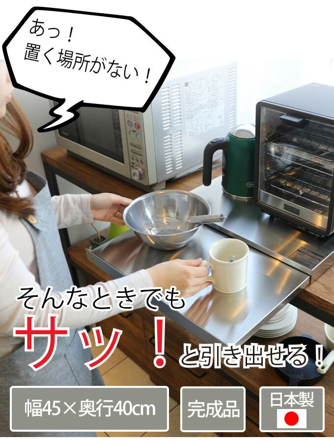 家電下スライドテーブル 幅45×奥行40 N291【日本製 ステンレス キッチン作業台 レンジ下 炊飯器下 足立製作所 作業スペース 作業テーブル】■