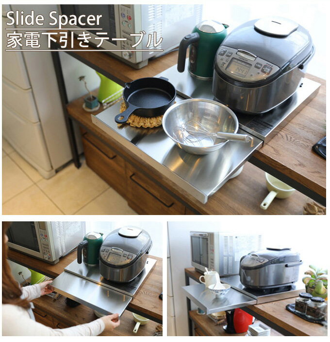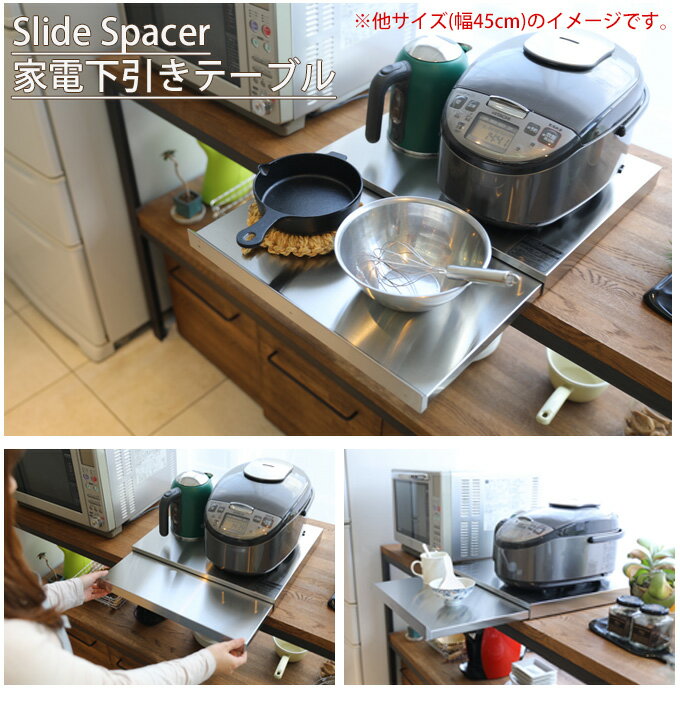 家電下スライドテーブル 幅45×奥40 スライドテーブル レンジ下スライドテーブル 作業テーブル 作業スペース 補助テーブル 補助台 キッチン収納 キッチンスライドテーブル レンジ台 隙間収納 炊飯器 トースター シンプル 電子レンジ 電気ポット IHクッキングヒーター 家電下